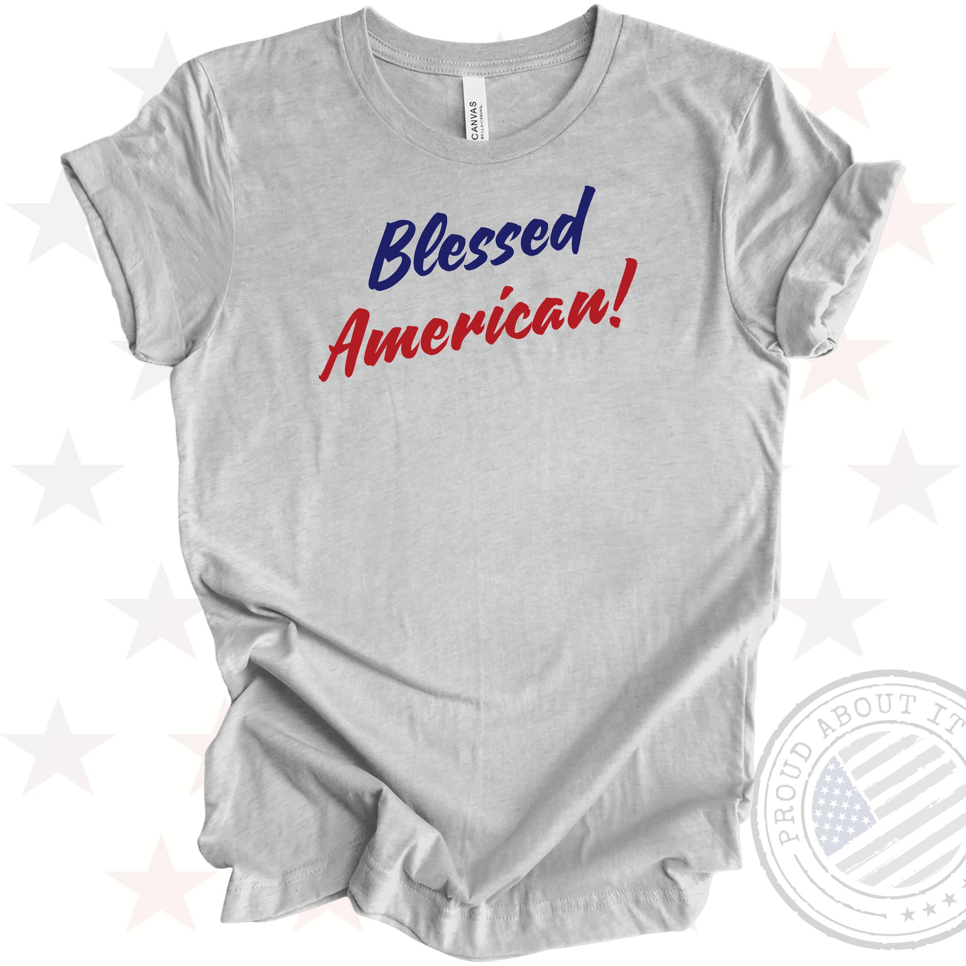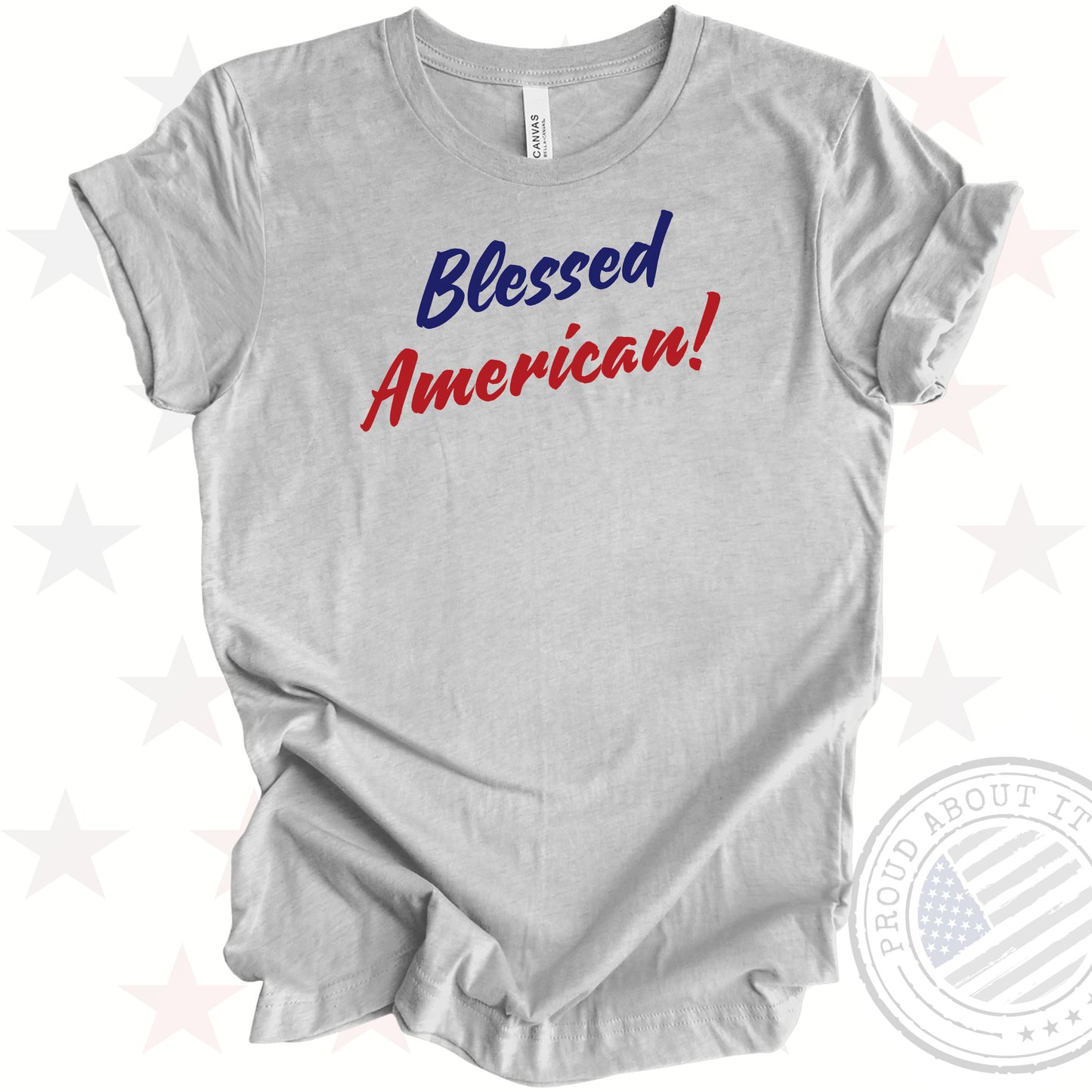 This shirt features clean, confident typography with an exclamation of gratitude and pride, because being American is a blessing worth wearing. Whether you're headed to a Fourth of July celebration, Sunday service, or just living out your values daily, this tee makes a clear and powerful statement.