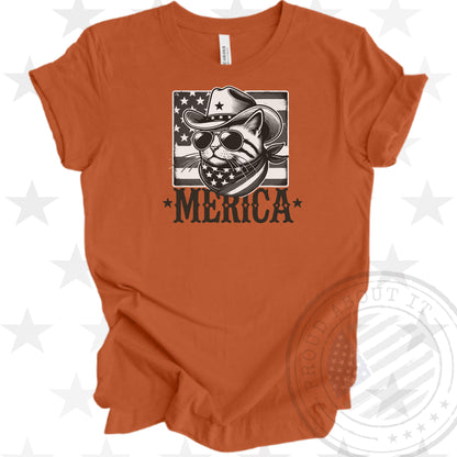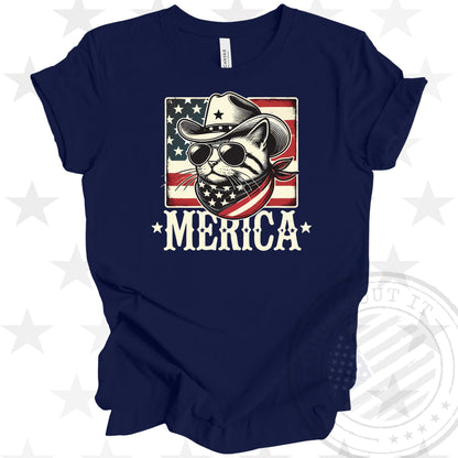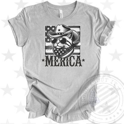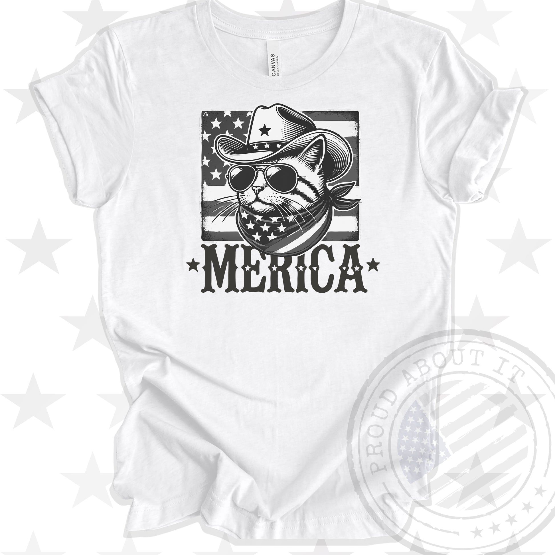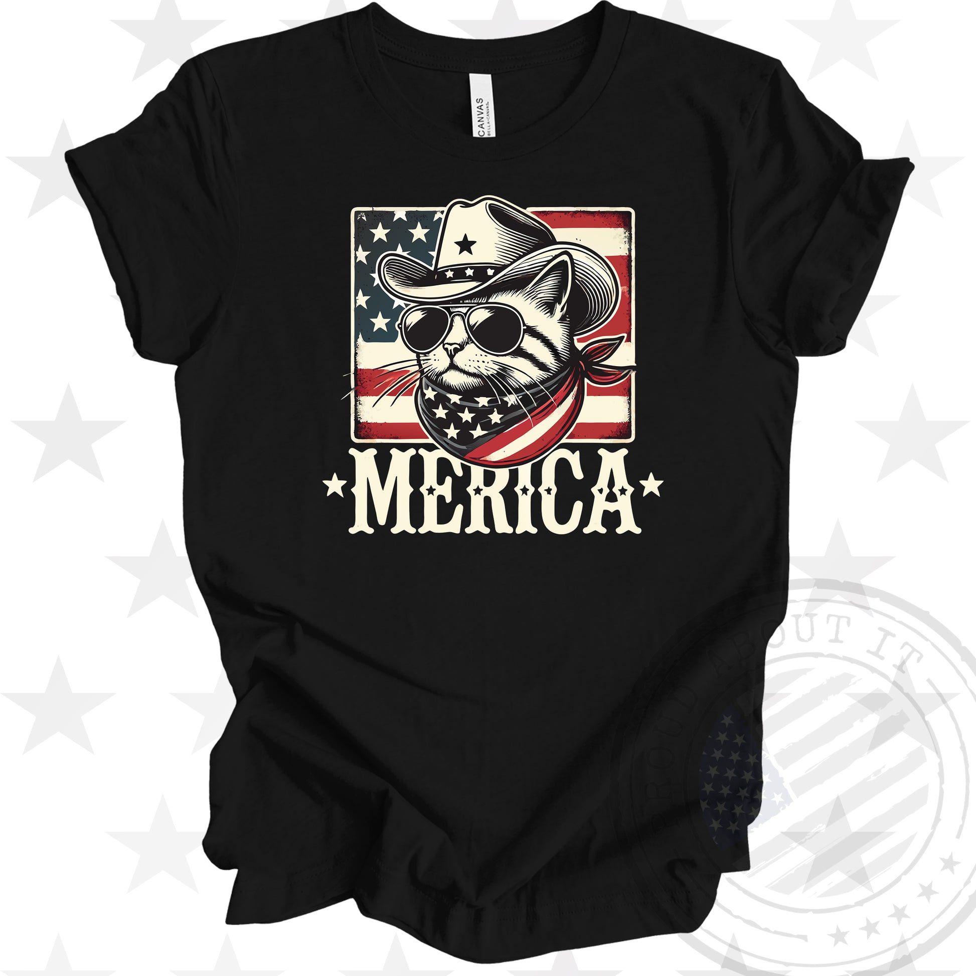 Merica Cat T-Shirt – Patriotic Cowboy Cat Graphic Tee | Funny USA Unisex Shirt