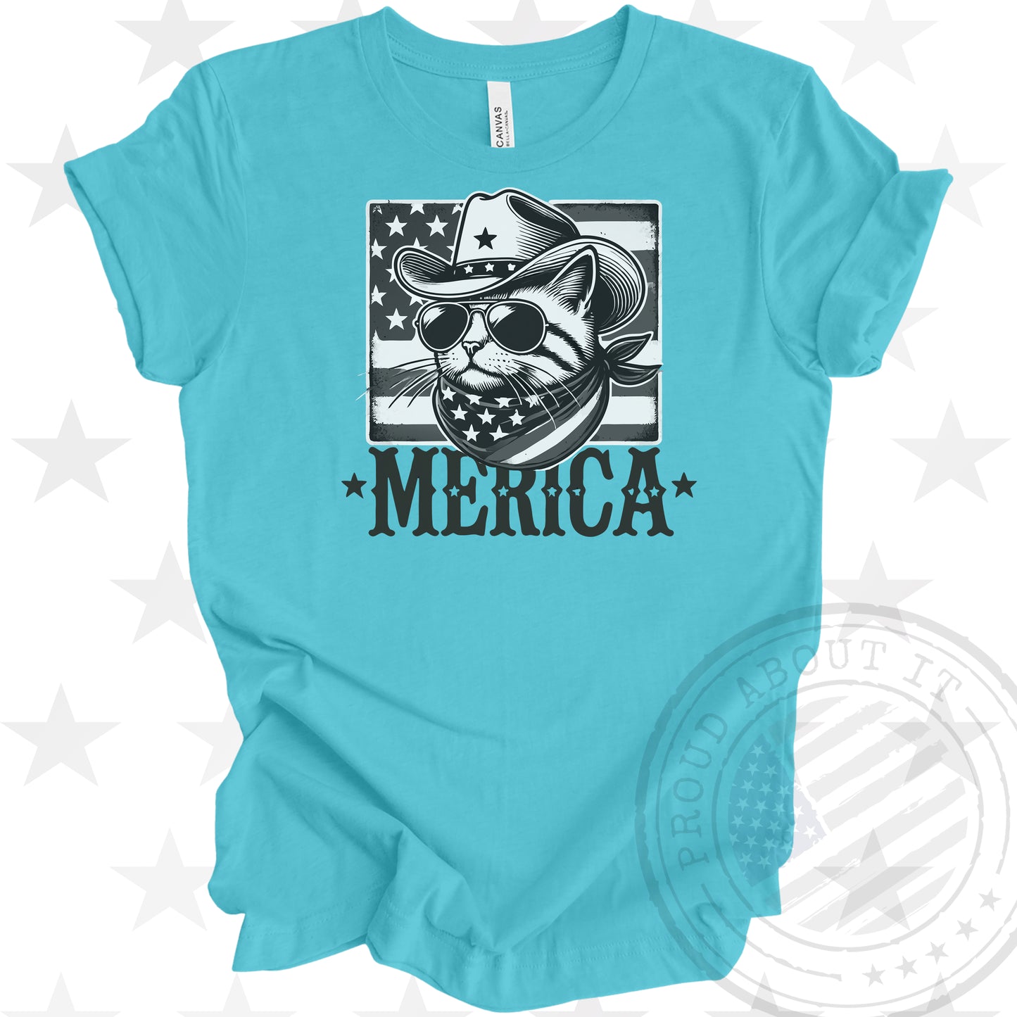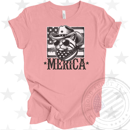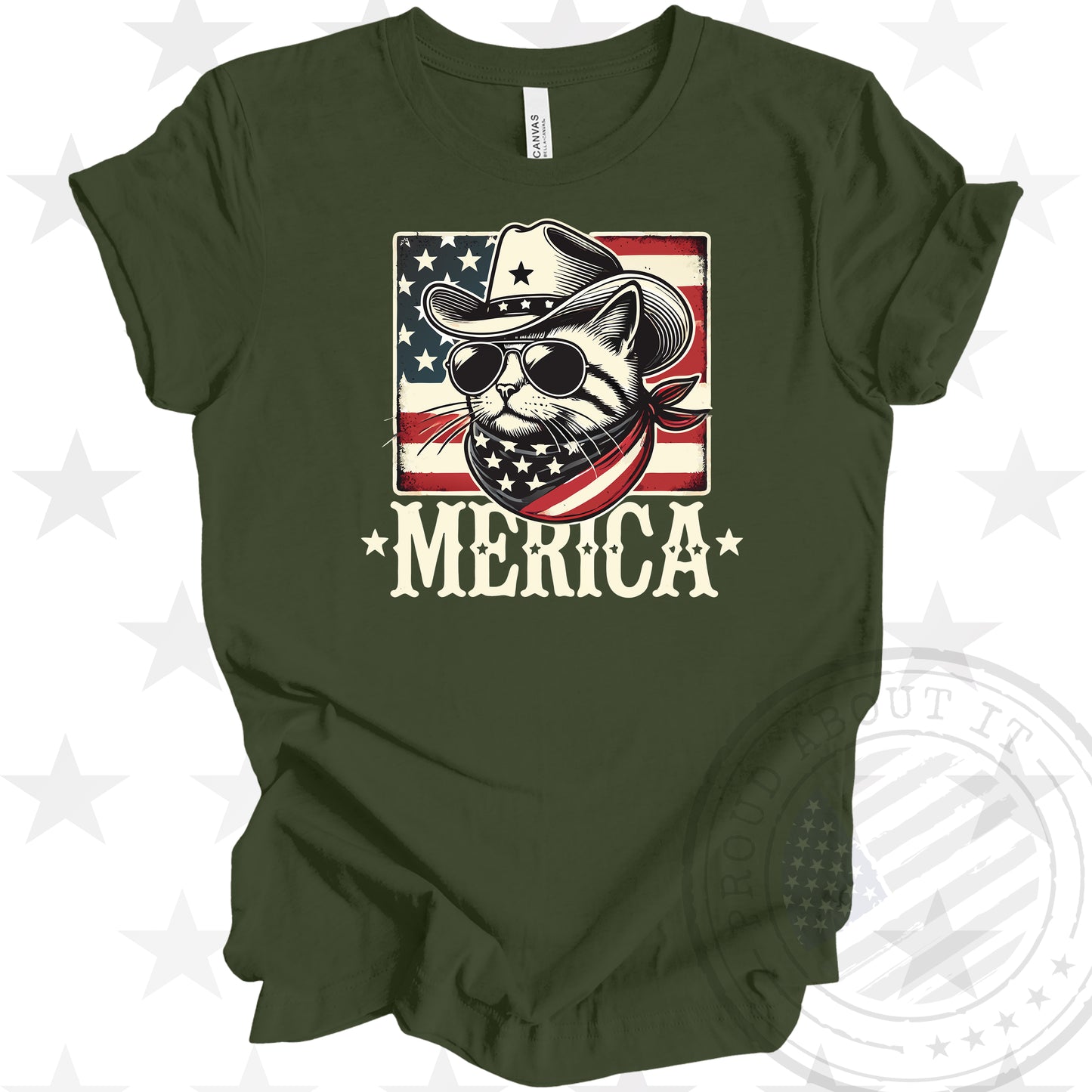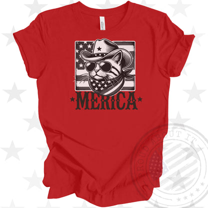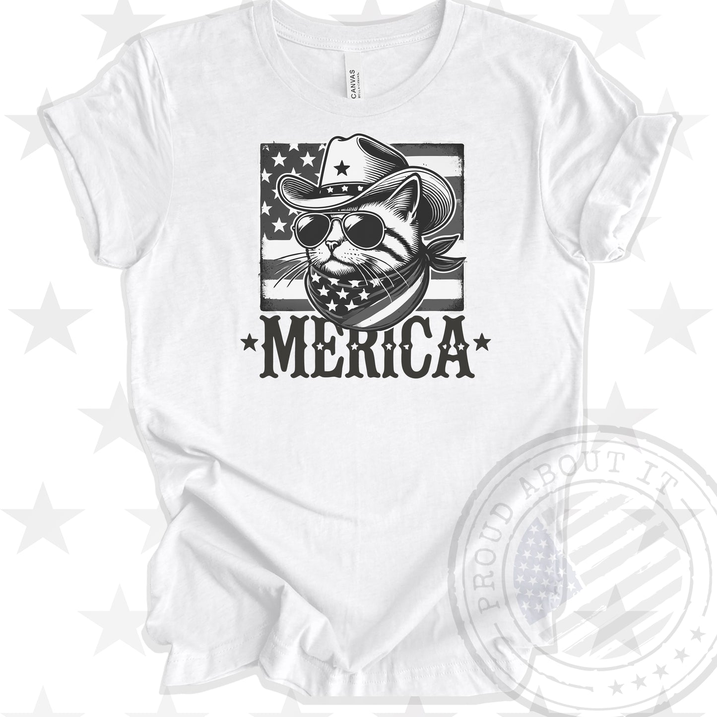 Merica Cat T-Shirt – Patriotic Cowboy Cat Graphic Tee | Funny USA Unisex Shirt